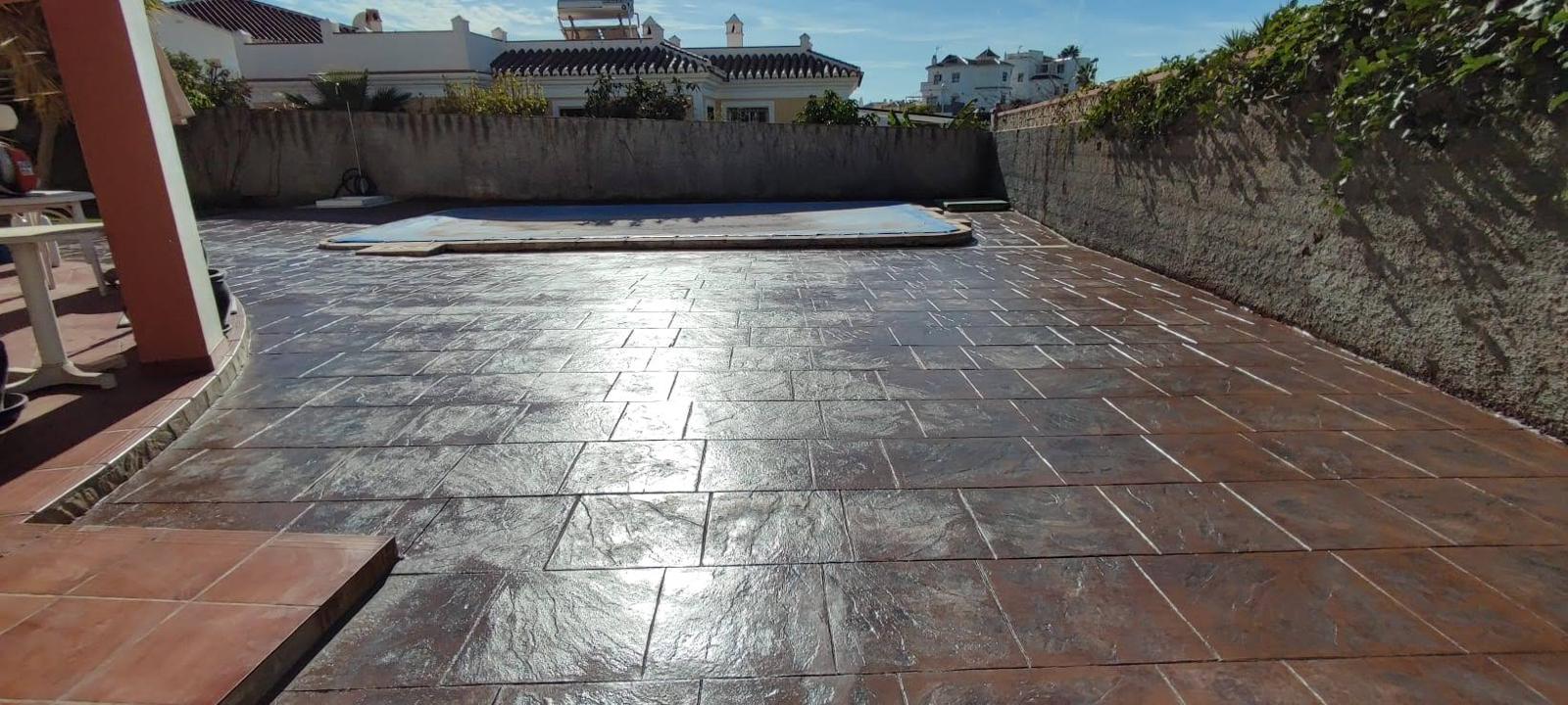 En JA Pavimentos somos especialistas en hormigón impreso en Málaga, una de las soluciones más demandadas para pavimentos exteriores por su resistencia, durabilidad y acabado decorativo.